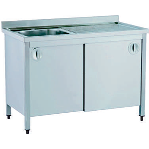 Stainless steel cabinet 1 sink/left with sliding doors 180x60x85