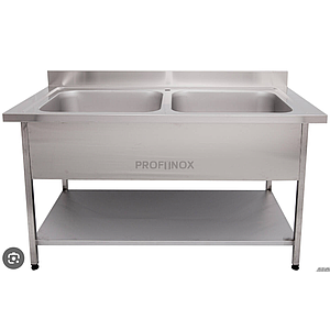 [KRCS.TR2ECT.1660] WORK TABLE WITH 2 SINKS WITH MAIN SHELF, 1600x600x850
